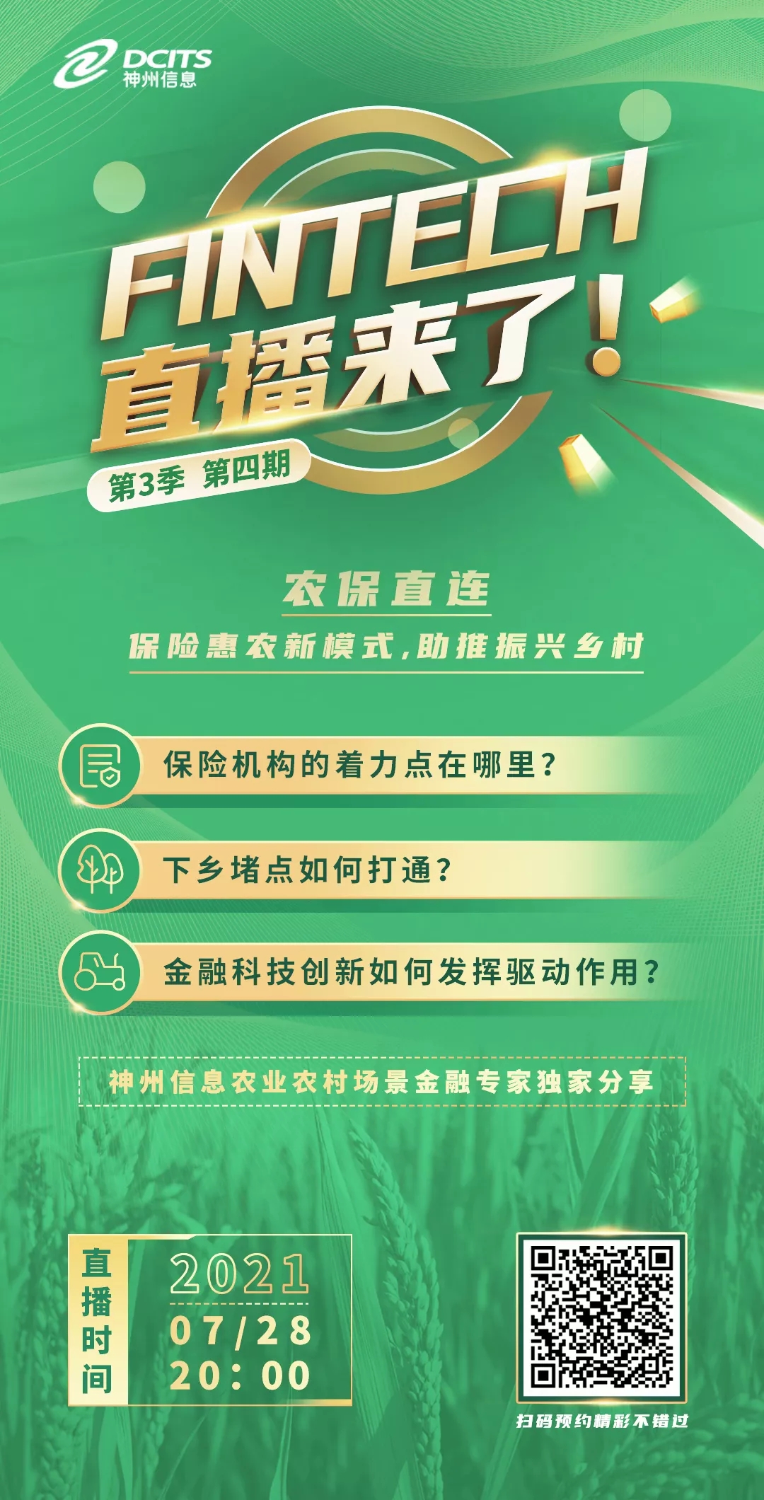 明天20:00开启直播丨【FinTech直播来了 第3季】第四期:农保直连:保险惠农新模式,助推振兴乡村